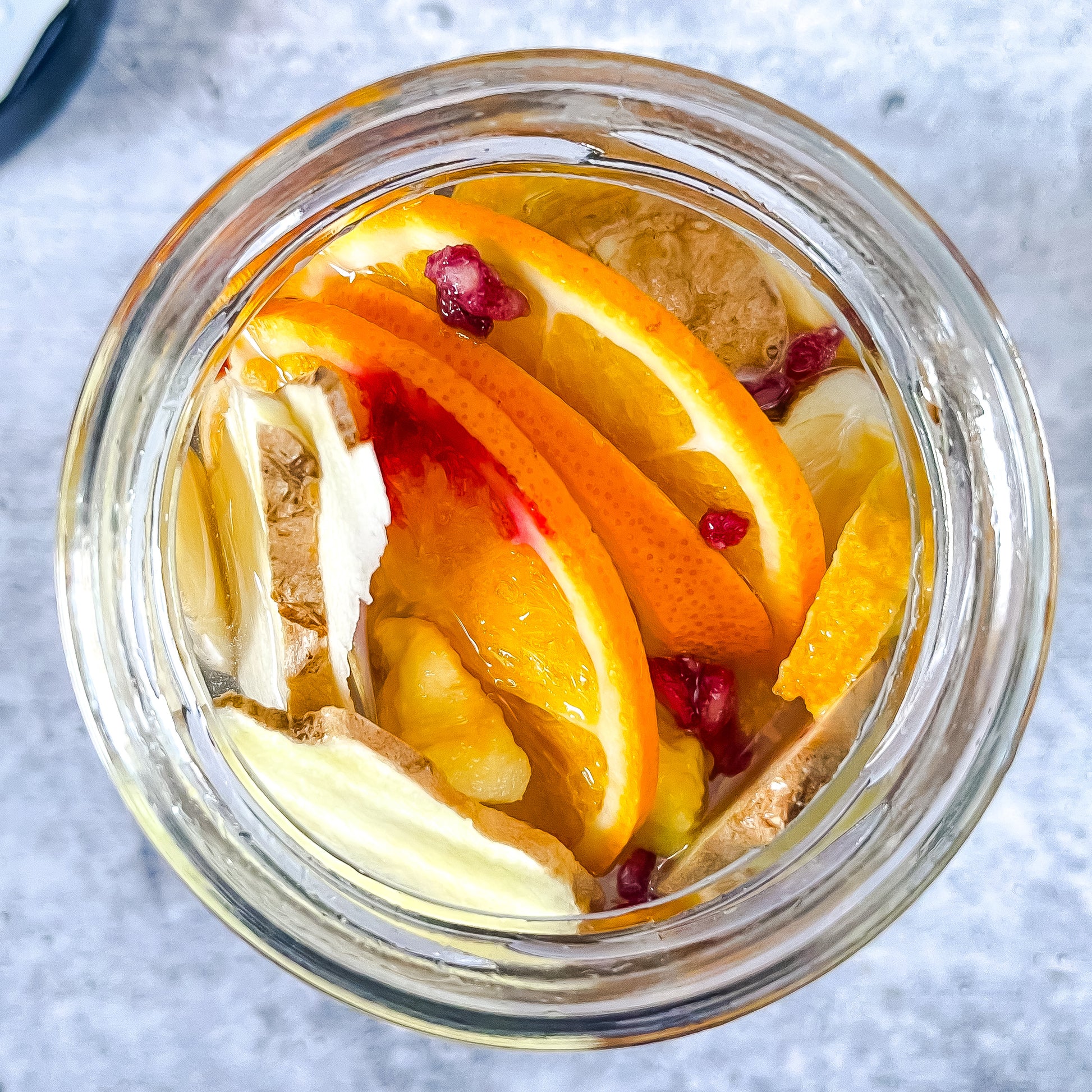 ingredients: Ginger, lemon, orange, pineapple, pomegranate